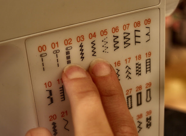 Kuna mu overlock on ikka veel haiguslehel, siis selle õmblemiseks kasutan ma tavalist õmblusmasinat. Kui sa tead milline on sinu masinal stretchõmblus, siis vali see, aga kui sul pole sellist varianti, siis saab ka siksakiga asja ära ajada. Mina kasutasin selle õmblemiseks nr. 2 õmblust, mis venib ning ei katke ja jääb kõige ilusam. Harilikult on see masinal märgitud sarnaselt nagu minu pildil, ehk siis kaks või kolm kõrvuti olevat pistet.